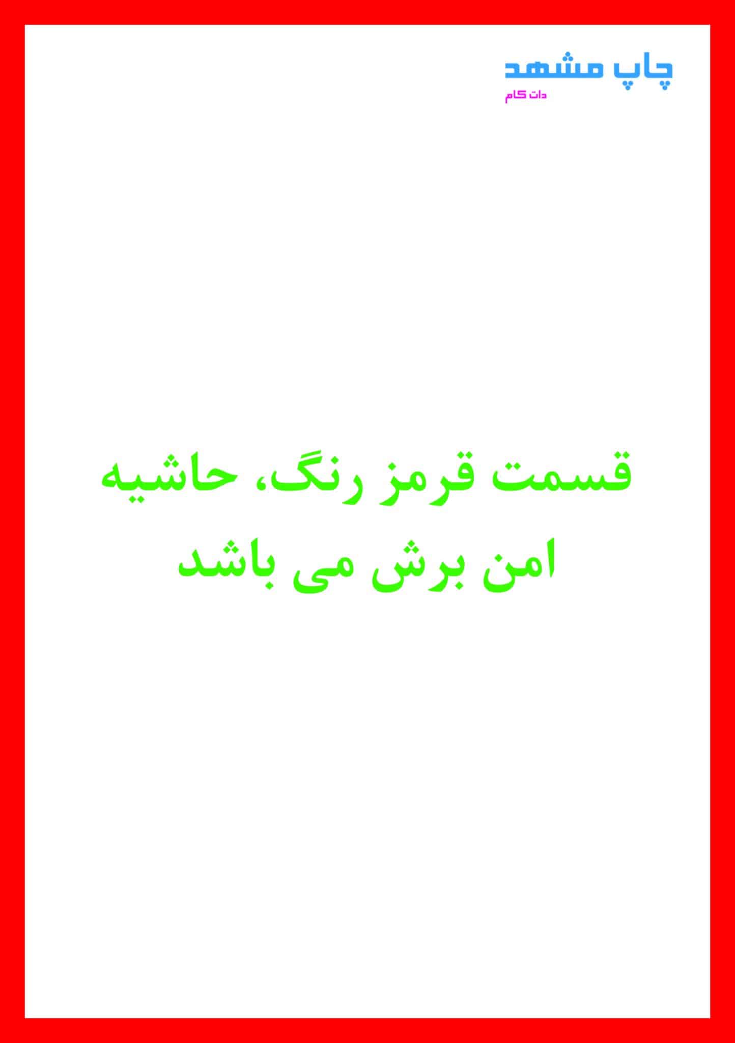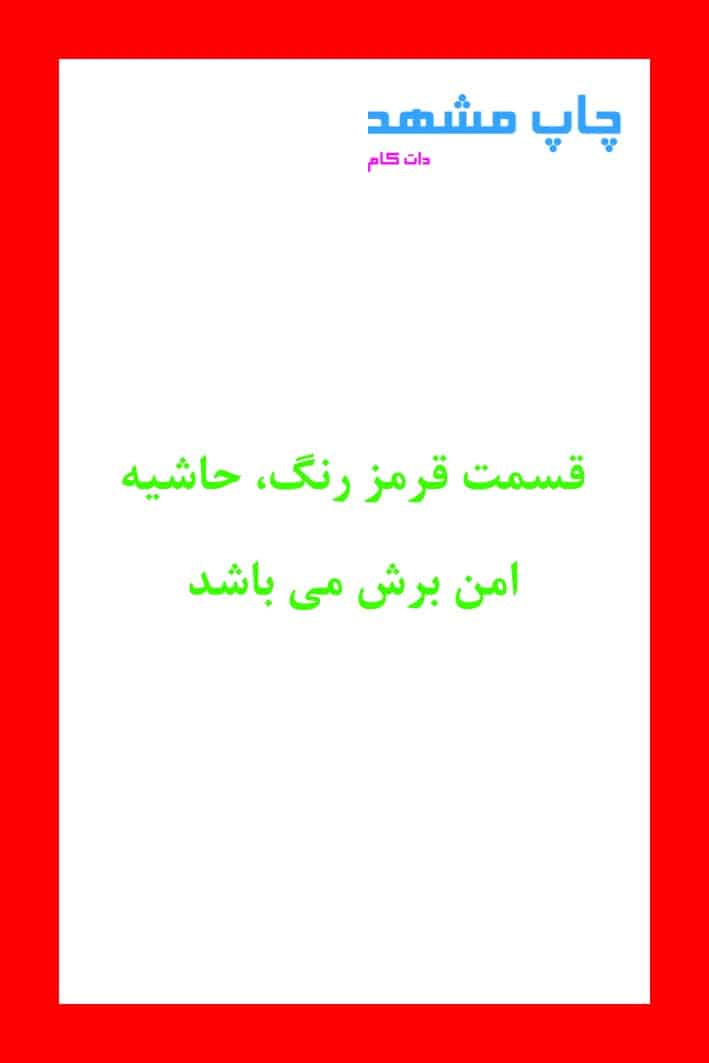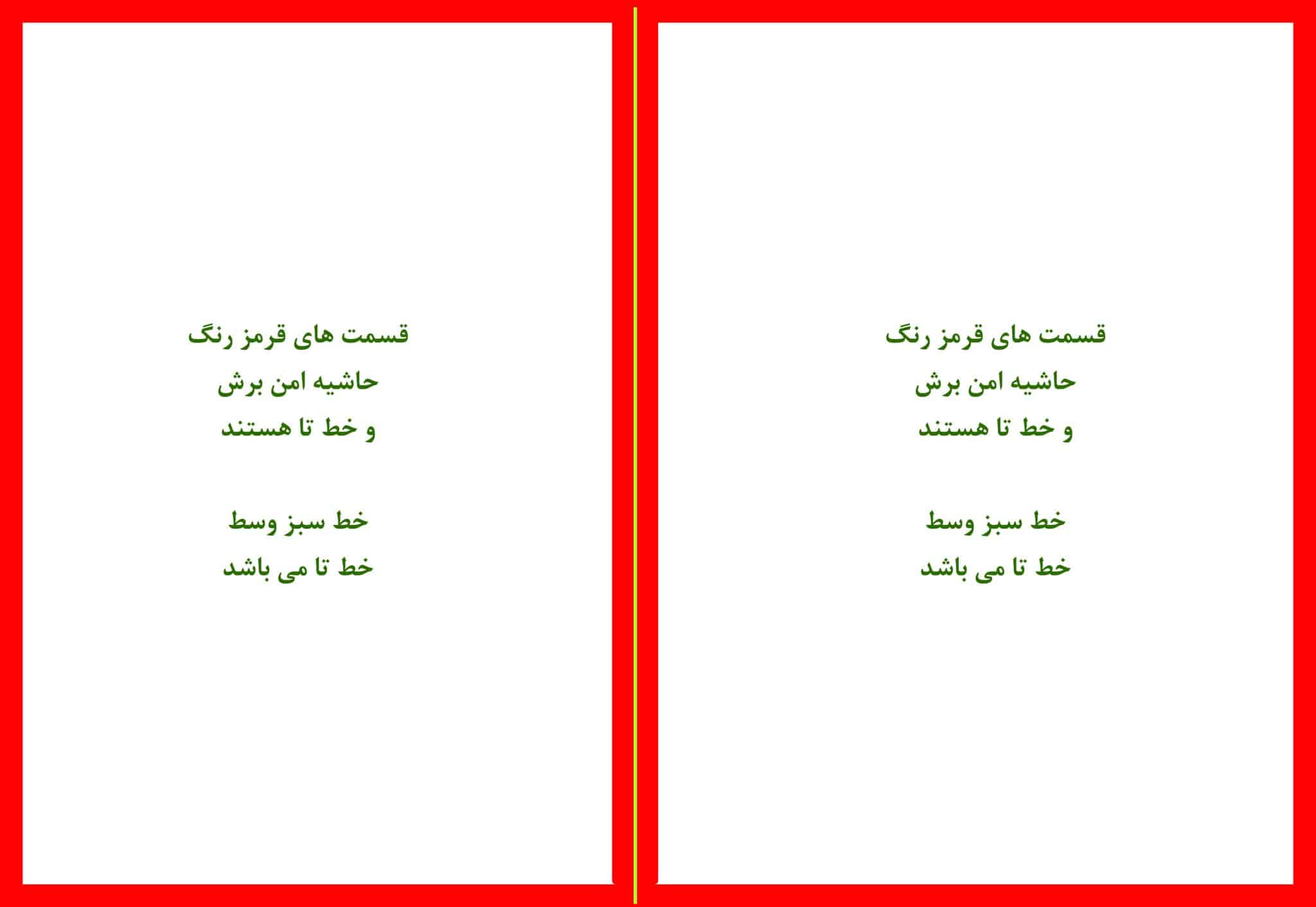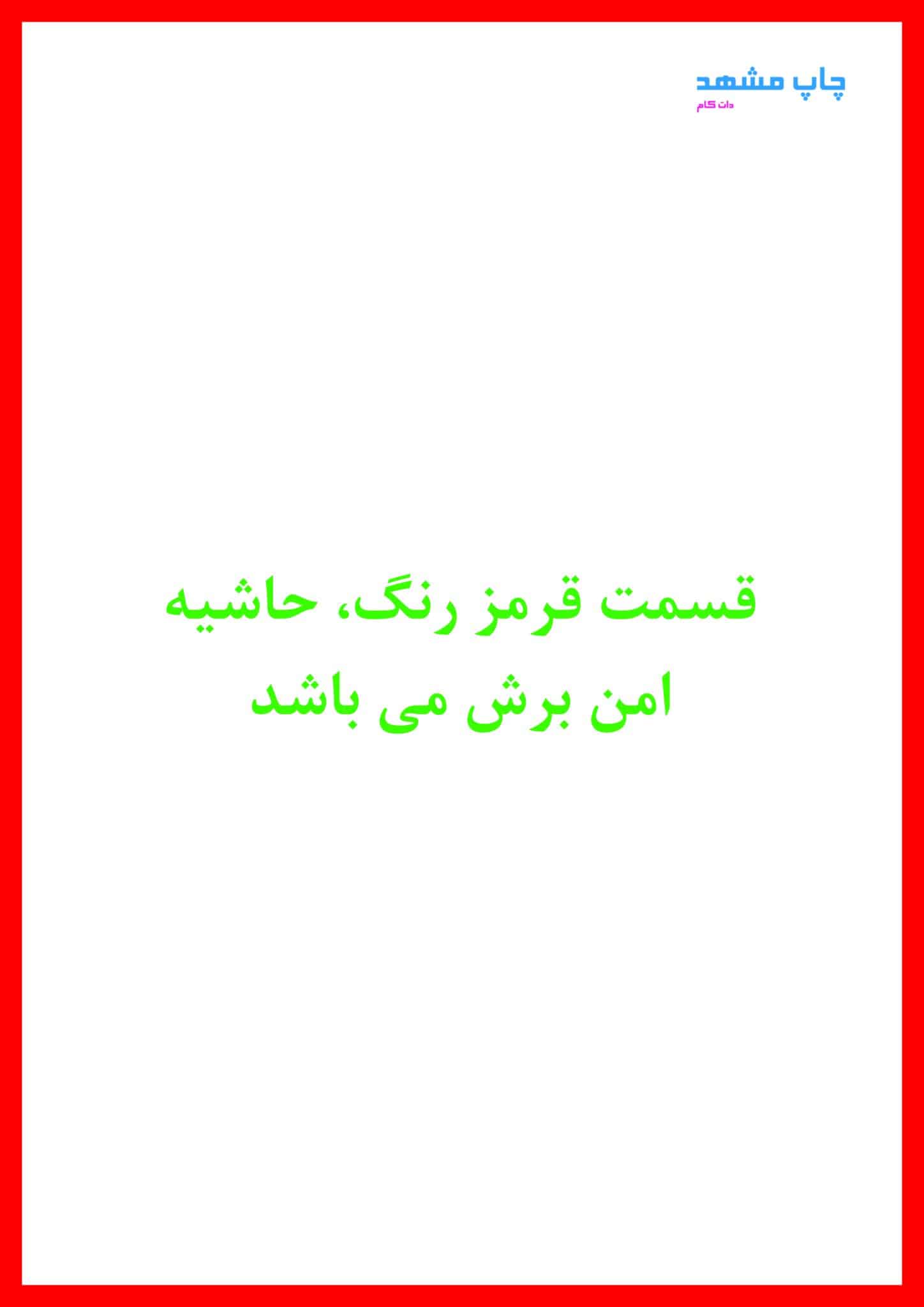 • بهتر است در زمان طراحی، ۳ میلی‌متر حاشیه برش (Bleed) در اطراف طرح در نظر گرفته شود.