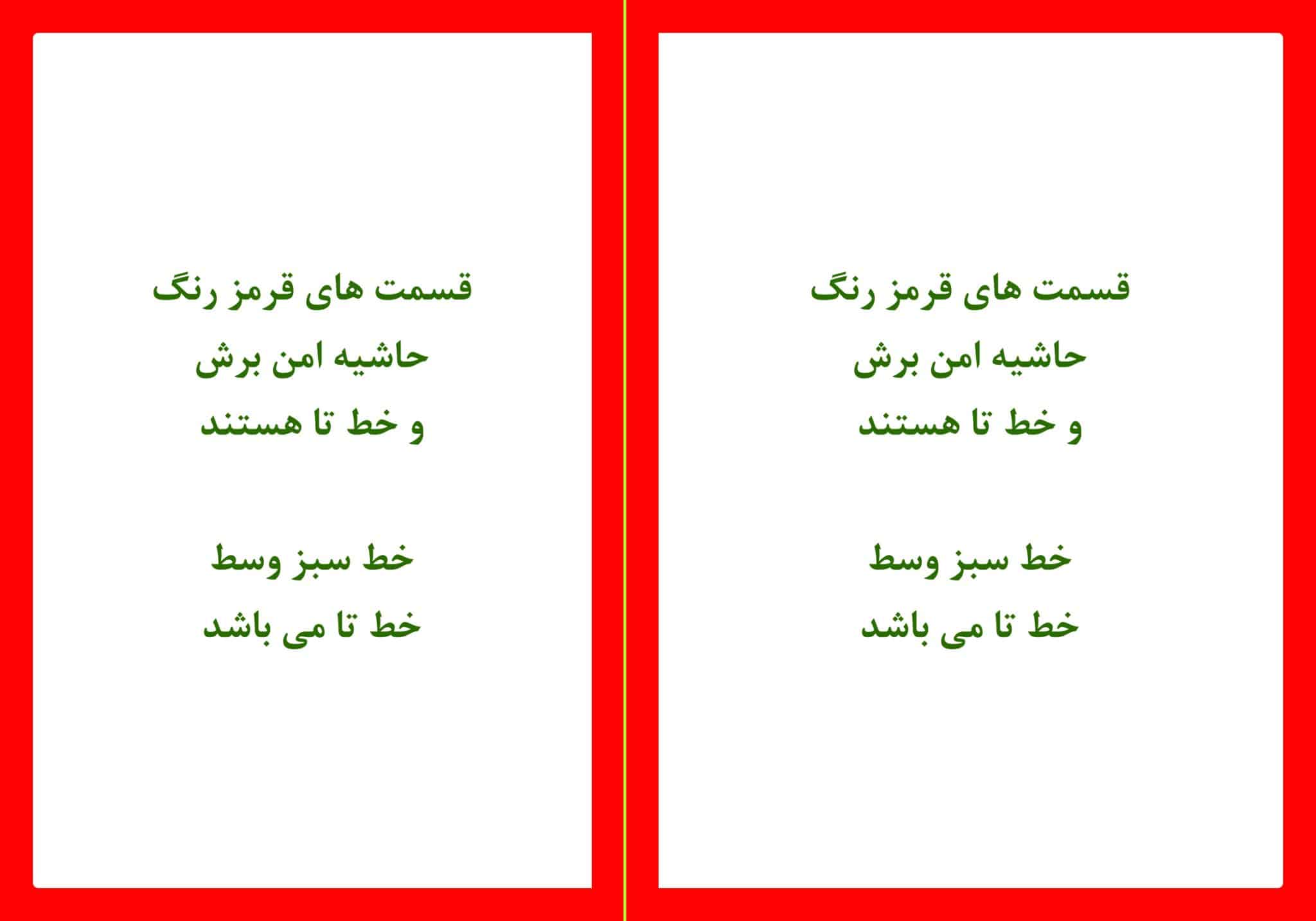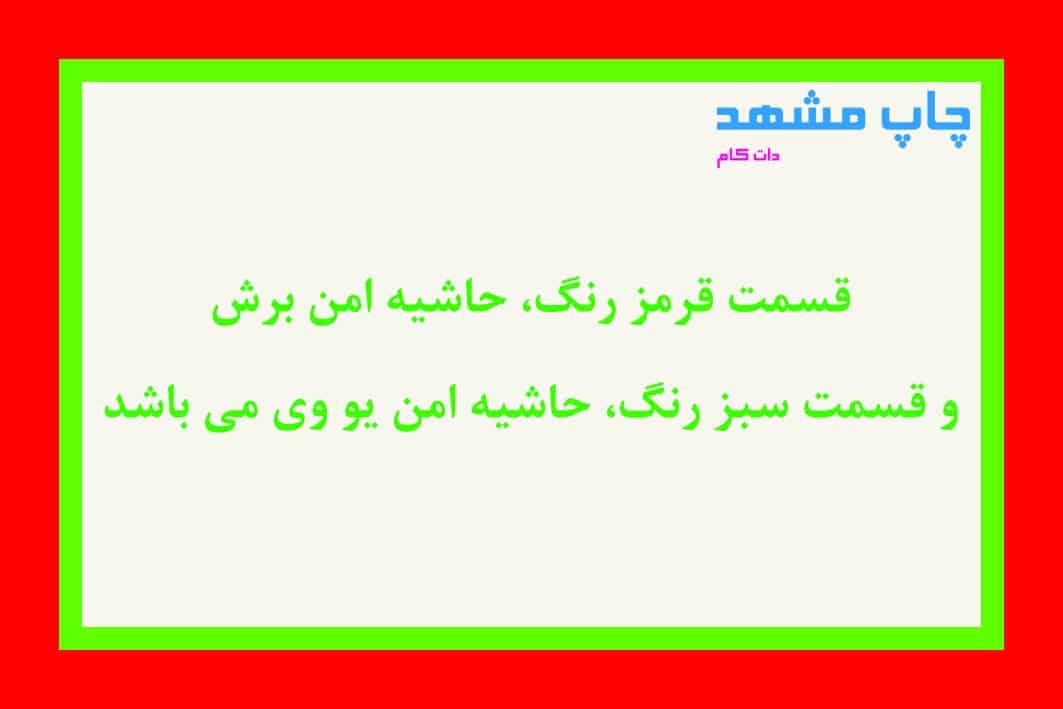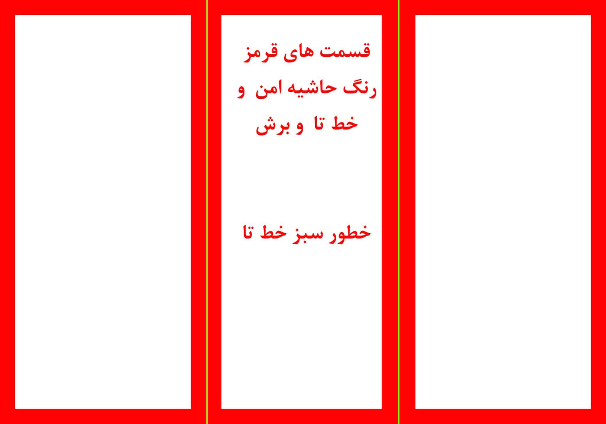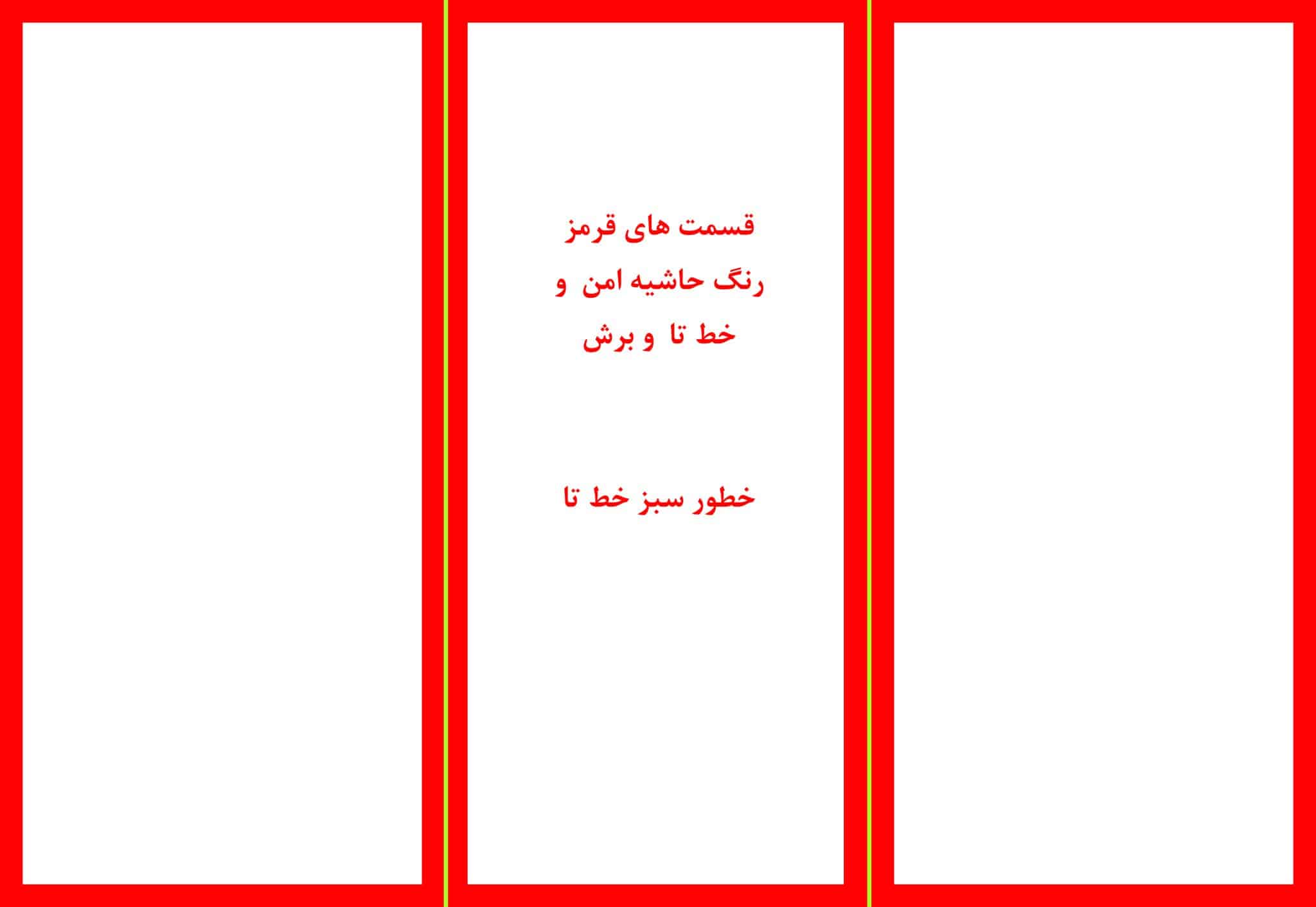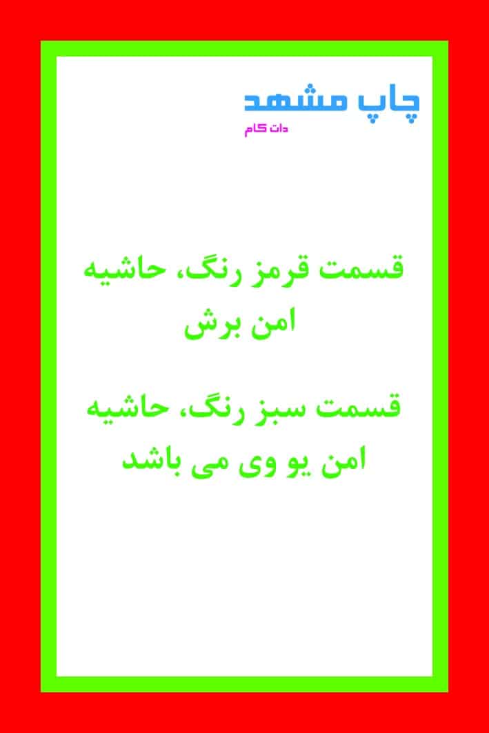 • بهتر است در زمان طراحی، ۳ میلی‌متر حاشیه برش (Bleed) در اطراف طرح در نظر گرفته شود.