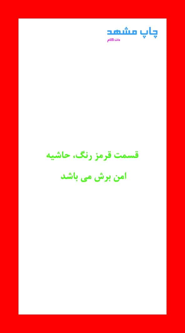 در صورت نیاز به ابعاد خاص، لطفاً با پشتیبانی چاپ مشهد تماس بگیرید تا قالب اختصاصی طراحی شود.