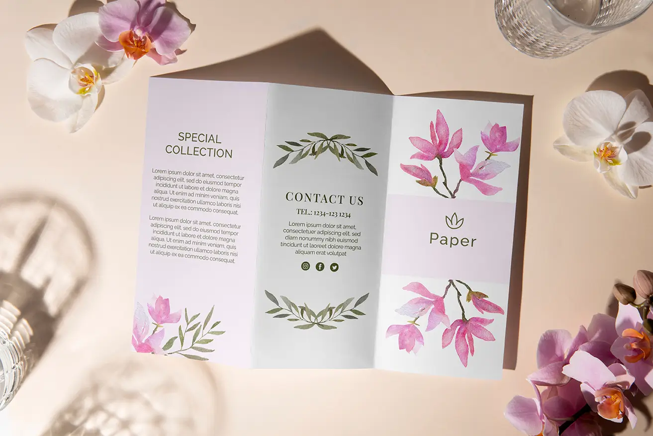 طراحی اختصاصی بروشور توسط تیم طراحی چاپ مشهد؛ مخصوص کسب‌وکارها، فروشگاه‌ها و مجموعه‌های تبلیغاتی.