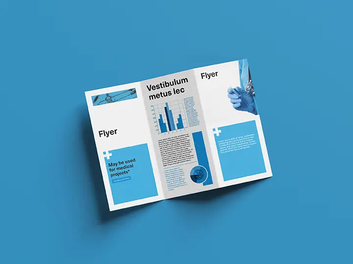 نمای جلویی بروشور چاپ شده ۱۳۵–۱۵۰ گرم گلاسه در مشهد