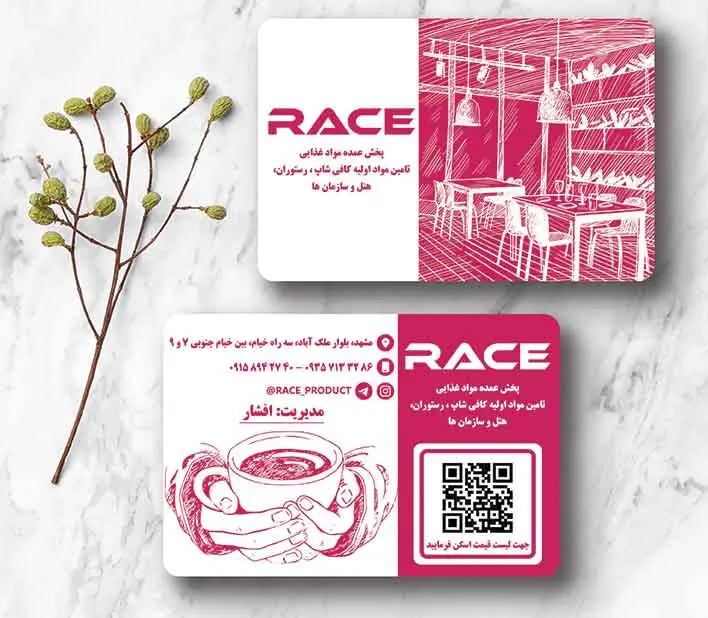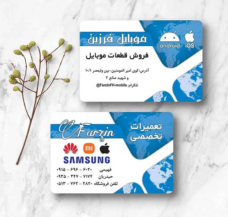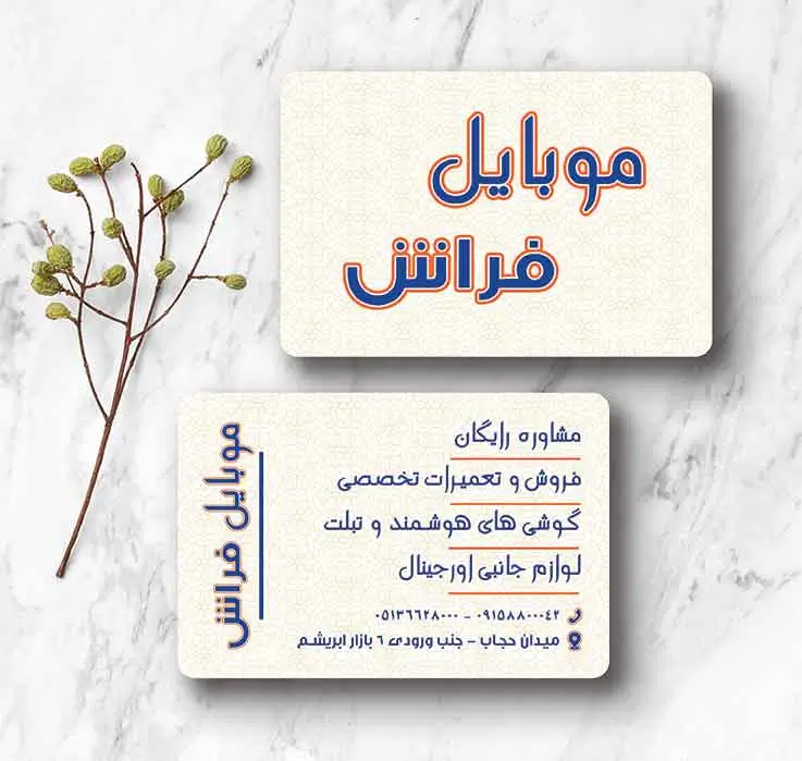 • ابعاد و قالب: سایز استاندارد طراحی ۹×۶ سانتی‌متر | ابعاد نهایی پس از قالب‌زنی دورگرد: ۵.۵×۸.۵ سانتی‌متر.